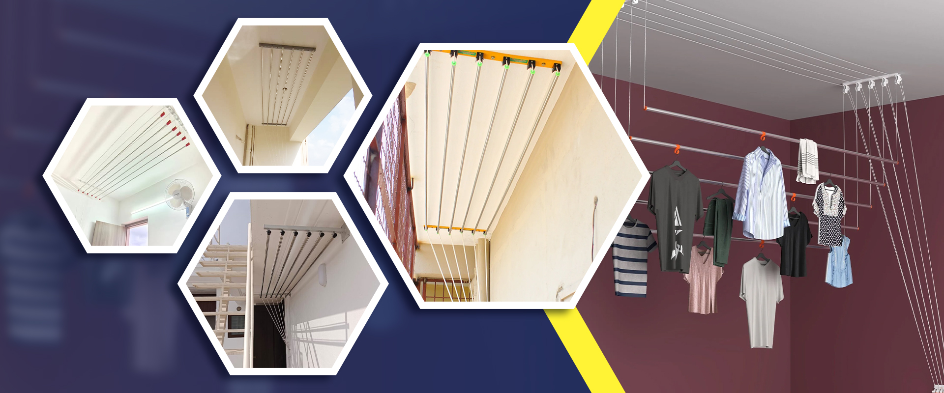 Our Ceiling Hanger is the definitive solution for managing laundry in modern homes. This pulley-ceiling-hanger-bangalore is crafted from 100% Stainless Steel, including all screws...